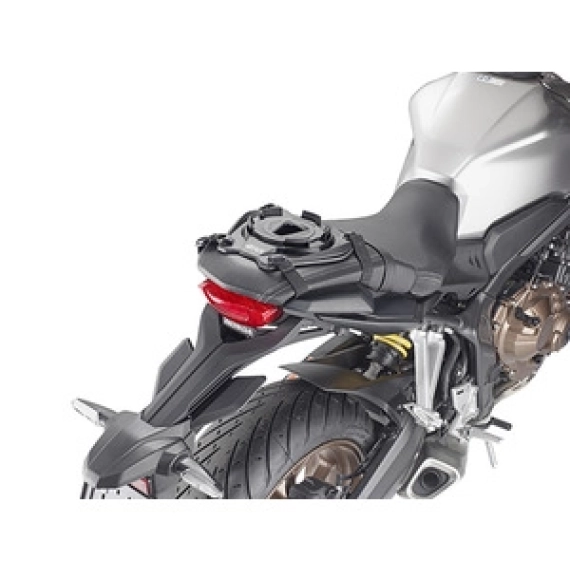 Plate for montering med stropper på bagasjebrett eller sete med festering for Givi tankvesker med flat base.